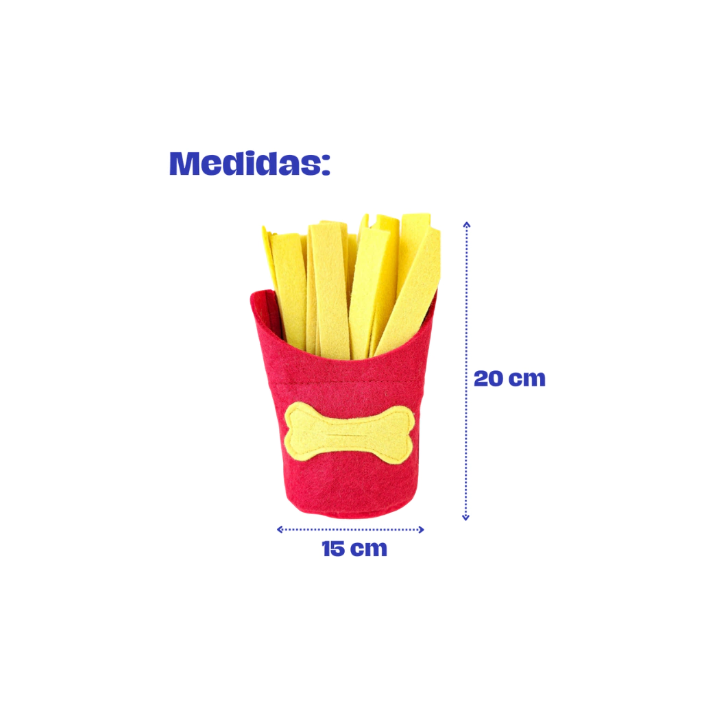 Um brinquedo que desafia, diverte e respeita os instintos naturais do seu pet. A Batata Frita de Farejar é uma pelúcia interativa desenvolvida para estimular o faro, o foco e o raciocínio de cães e gatos. Seu interior pode ser recheado com petiscos ou ração, transformando a hora do lanche em uma atividade de caça e busca que promove gasto saudável e controlado de energia mental.