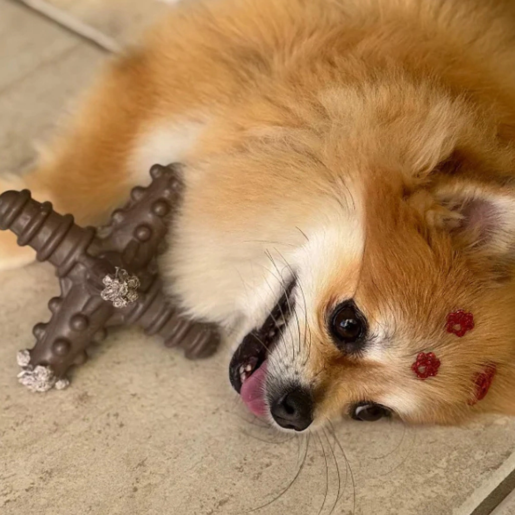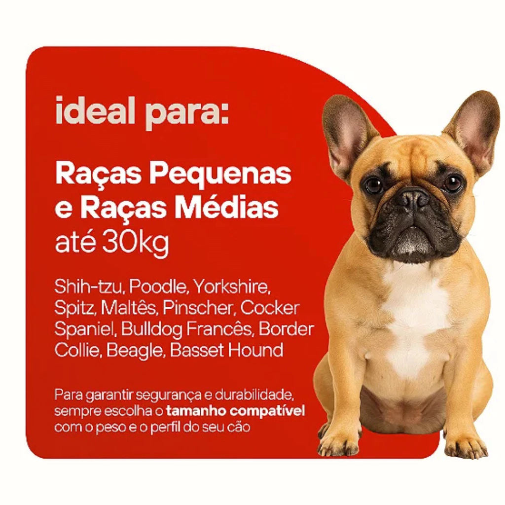 Feito com carne de verdade na composição, biocomposto vegetal e fibra de madeira, ele é perfeito para cães de porte pequeno e médio com mordidas fortes — e também para aqueles que preferem um brinquedo mais gostoso e atrativo de roer.