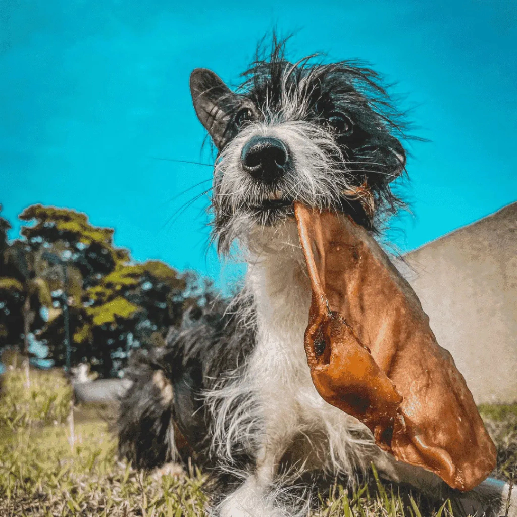 orelha suína natural cachorro, petisco natural para cães, mordedor natural pet, snack saudável cachorro, enriquecimento ambiental cães, orelha suína desidratada