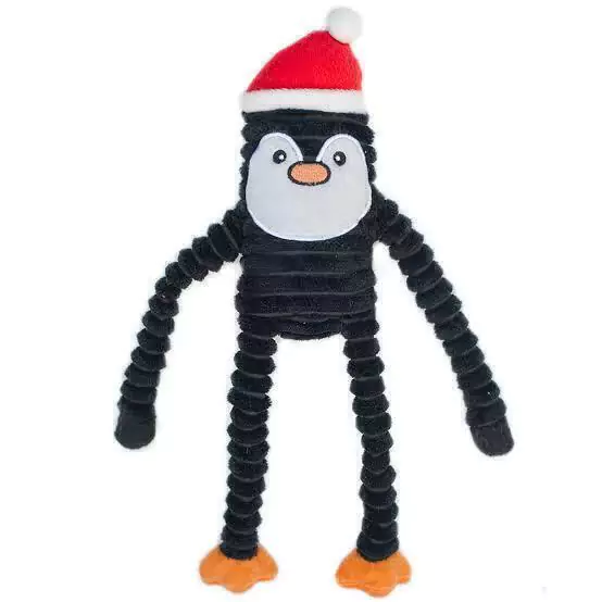 Os Holiday Crinkles contêm um apito no corpo e apresentam braços e pernas enrugados, tornando-os os amigos perfeitos para brincadeiras de mau gosto. Seu tamanho e maciez também o tornam um ótimo companheiro de abraço para seu cão relaxar e relaxar.
